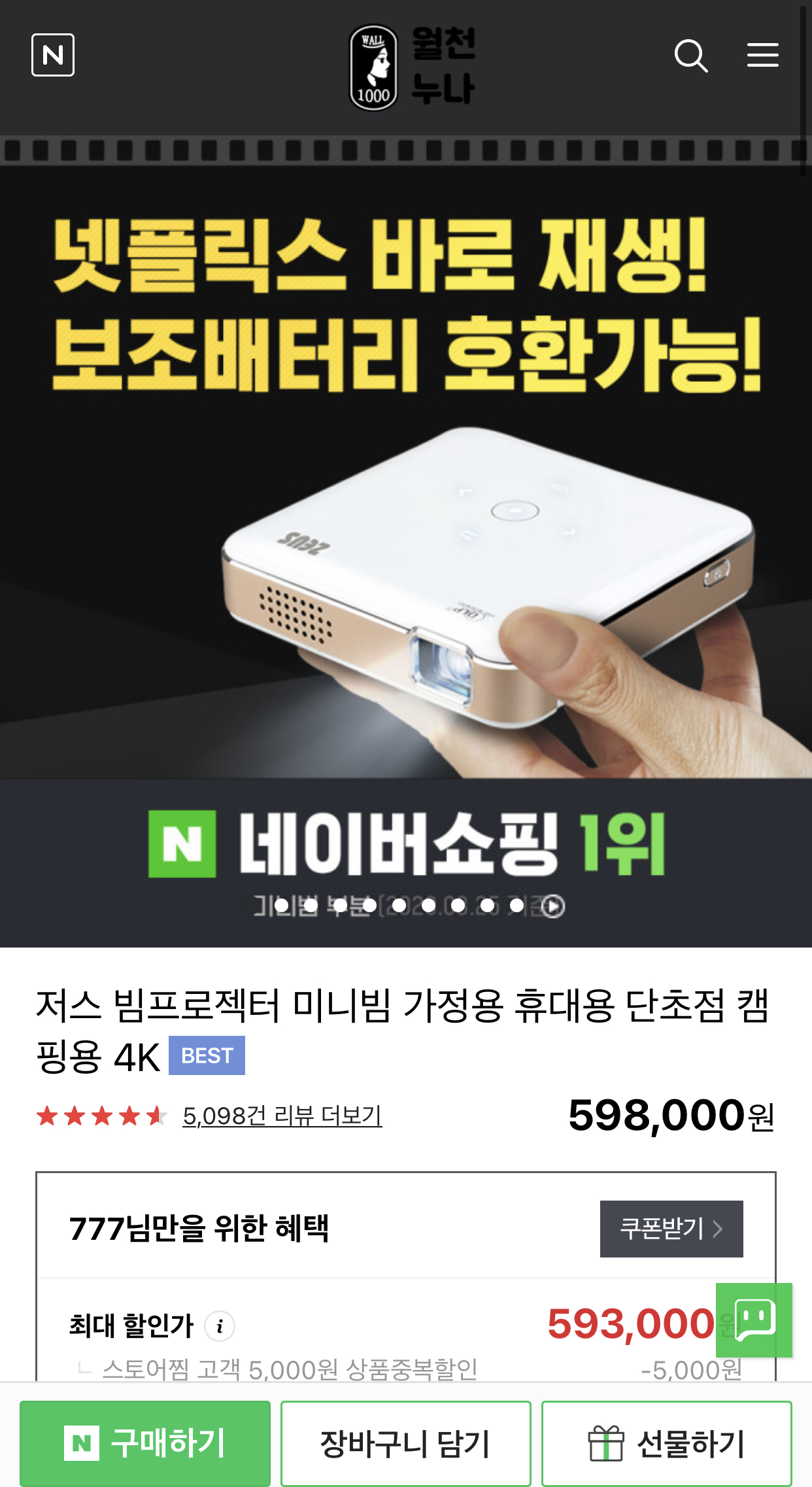 넷플릭스 유튜브 스트리밍이 가능하고 사운드 자체 내장 , 보조배터리 충전 가능 기능은 캠핑족 , 넷플릭스 족에겐 더할나위없는 기능이었습니다 👍🏻 집에서 사용하기에도 너무 만족스러웠던 기능! 화질은 기대했던것보다 아쉬웠지만 프로젝터의 한계라고 보시면 될 거 같구요? 할인 판매는 약간 낚인 기분이라 뭔가 찝찝,, 처음부터 할인가라고 생각하시면 정신건강에 좋을 듯 합니다 ㅎ