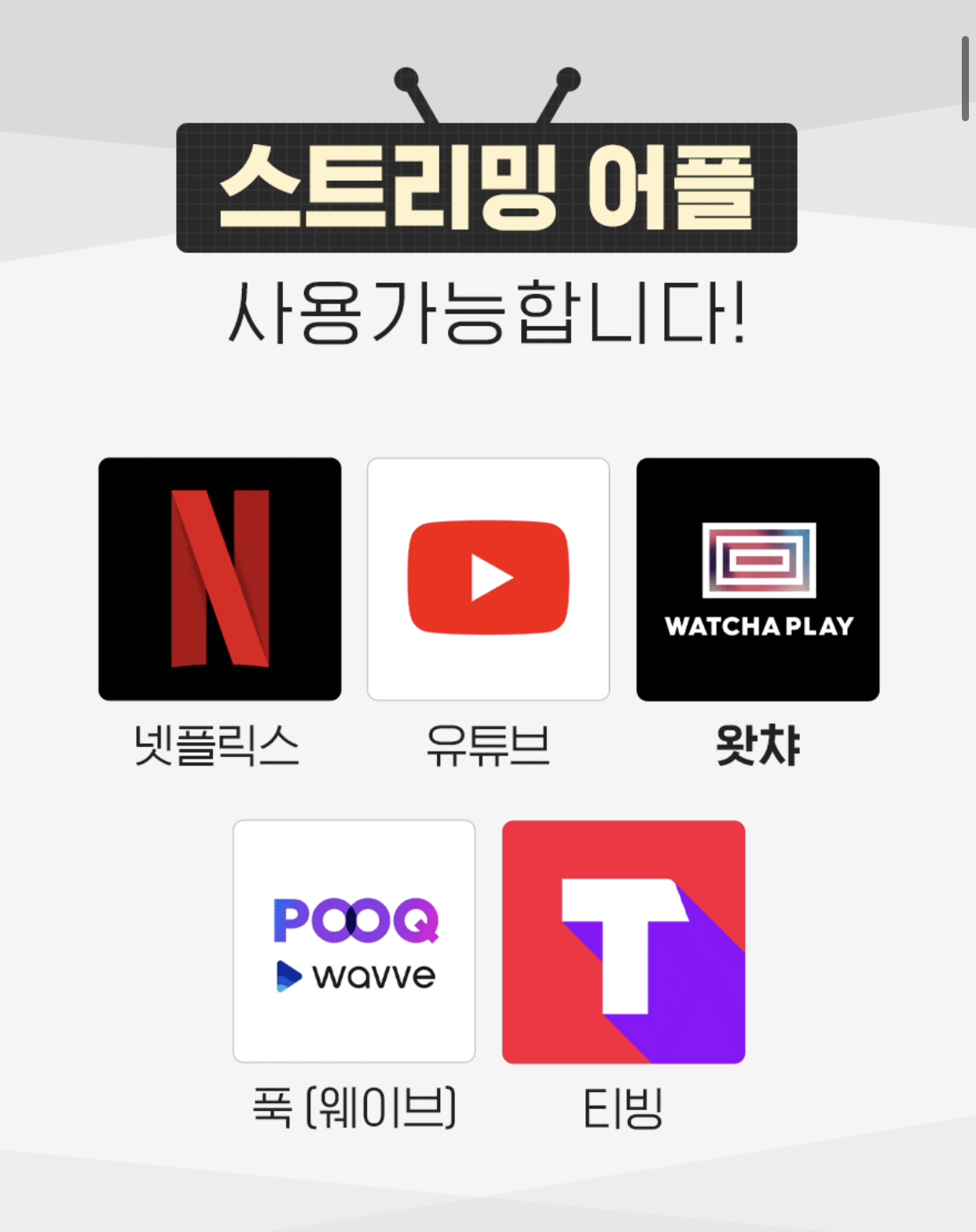 그 외에도 다양한 어플 사용 가능한데 제가 쓰는 어플은 넷플 유튜브만 있어서 무쓸모네요 ㅎ