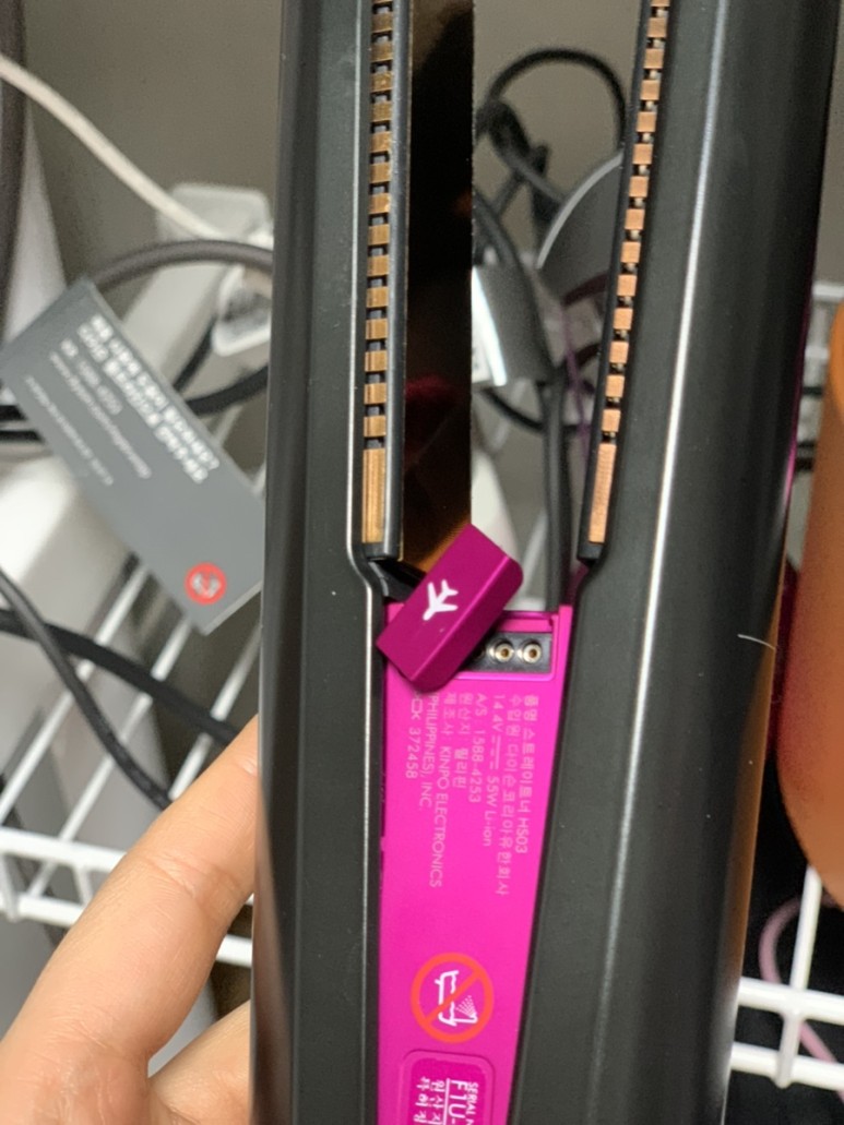 고데기를 오랜시간 사용하실 경우나 여행하실때는 요렇게 거치대 들고가시지마시고 본품이랑 충전기만 가셔가셔서 직접 연결하실 수도 있답니다 ^^ 이것 역시 자석이라 근처만가도 착! 붙음