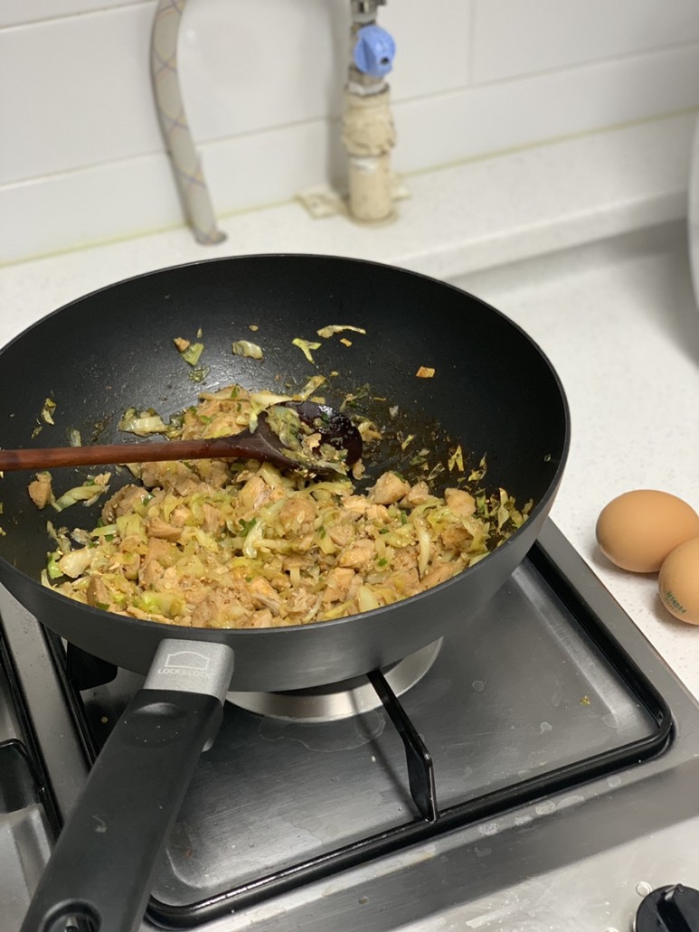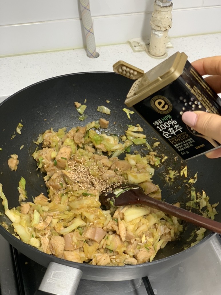 오늘의 메뉴는 닭가슴살 양배추 덮밥입니다