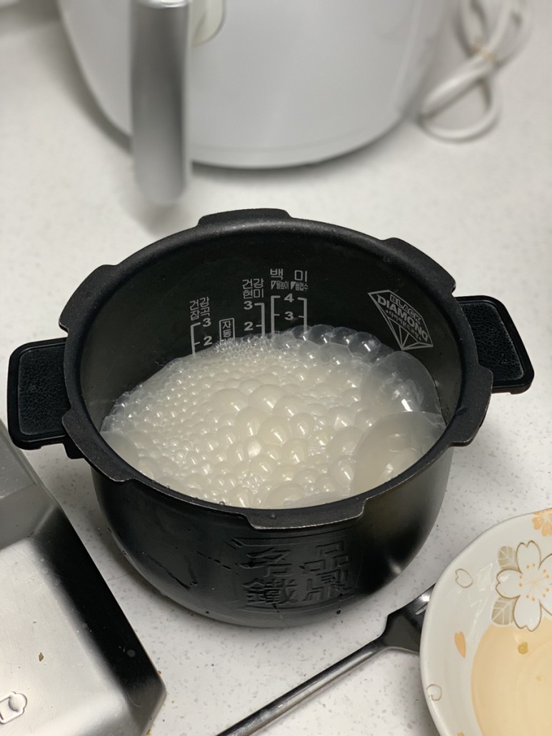 일단 먼저 밥을 해줘야겠죠??? 어디서 봤는데 탄산수로 밥을 하면 훨씬 찰지고 맛있다고 하더라구요