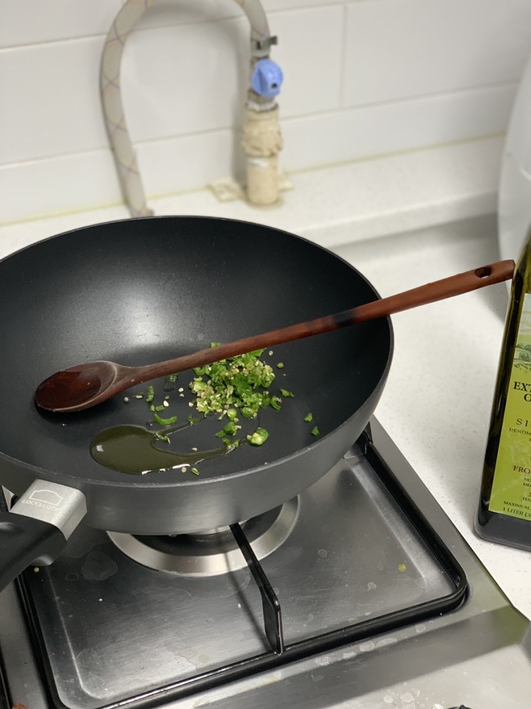 그 다음은 재료를 손질해줍니다. 마늘은 다져주고 (전 다진걸 샀지요^^) 청양고추 1개를 다져줍니다.