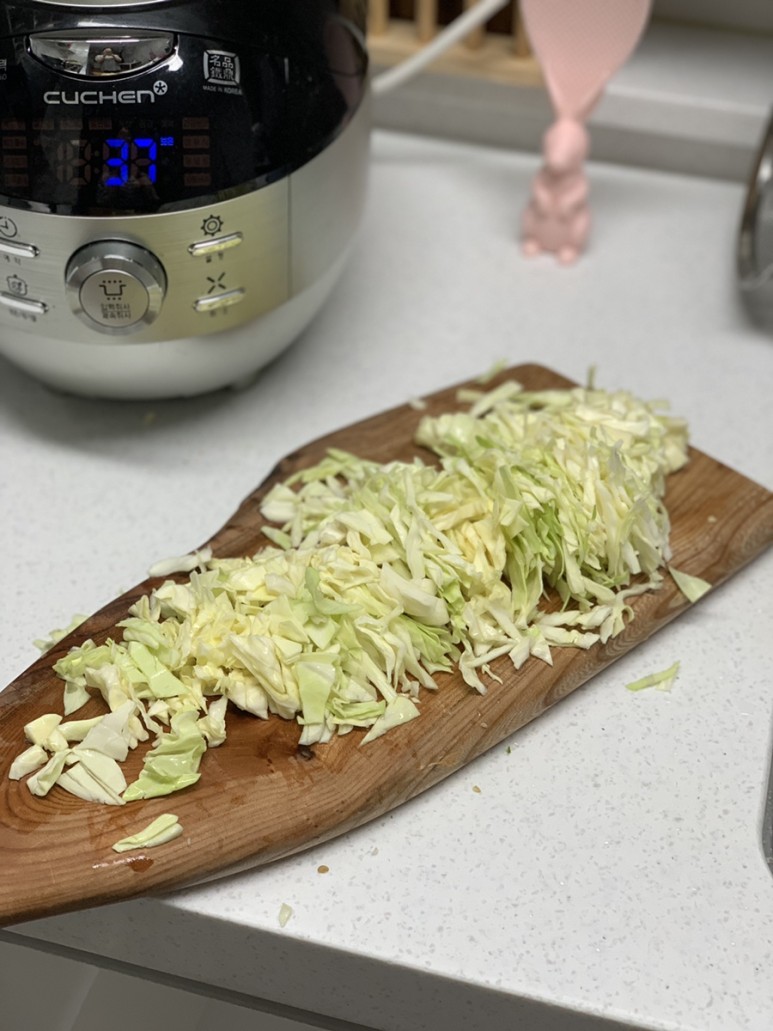 양배추는 채를 썰어주고요! 닭가슴살은 사각썰기!!! 참 쉽죠잉???