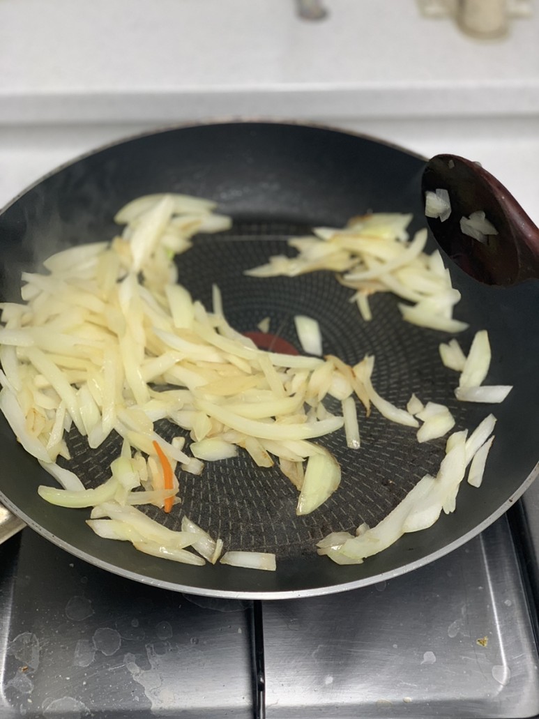 양파는 카라멜라이징을 해줍니다. 갈색빛이 돌때까지 볶아주면 달달한 맛이나죠!