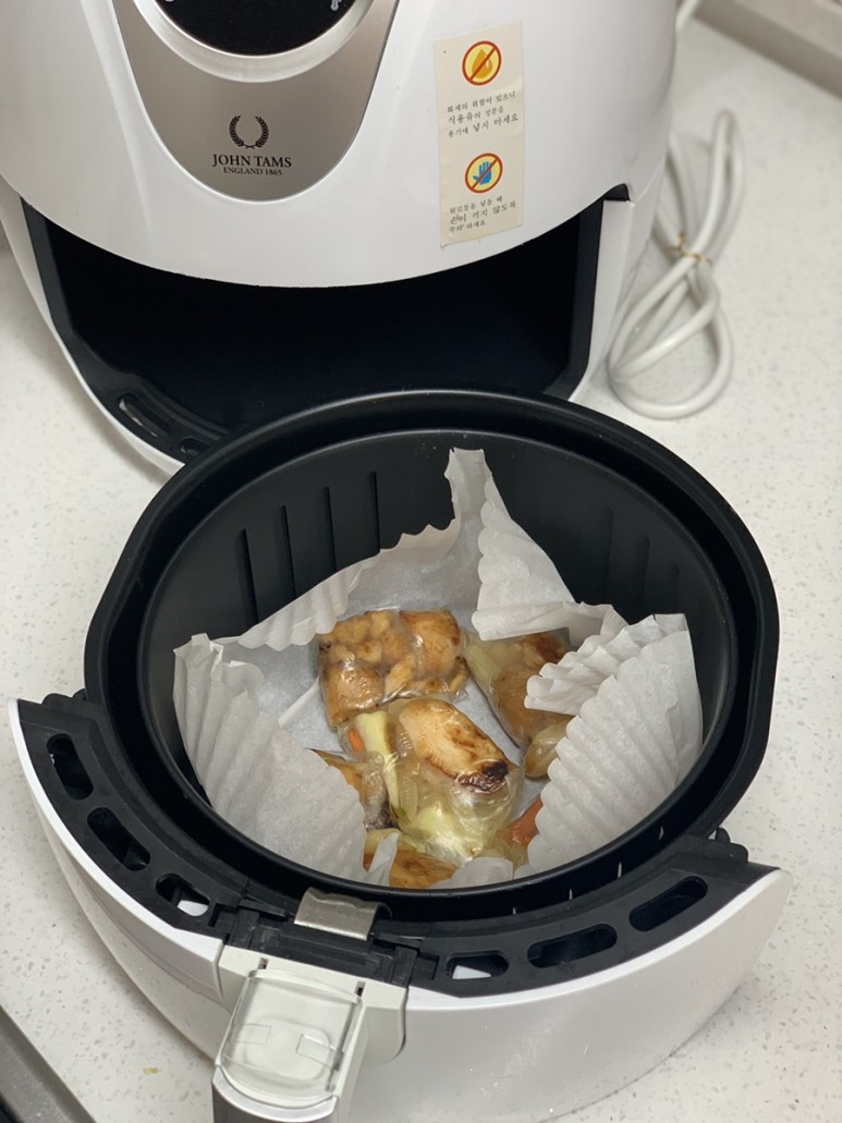 반은 에어프라이기에 10분 돌려 바삭하게 먹는다