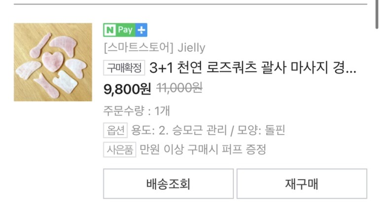 jielly라는 네이버스토어에서 승모근 관리에 좋은 돌핀모양 로즈쿼츠를 구매했습니당!!