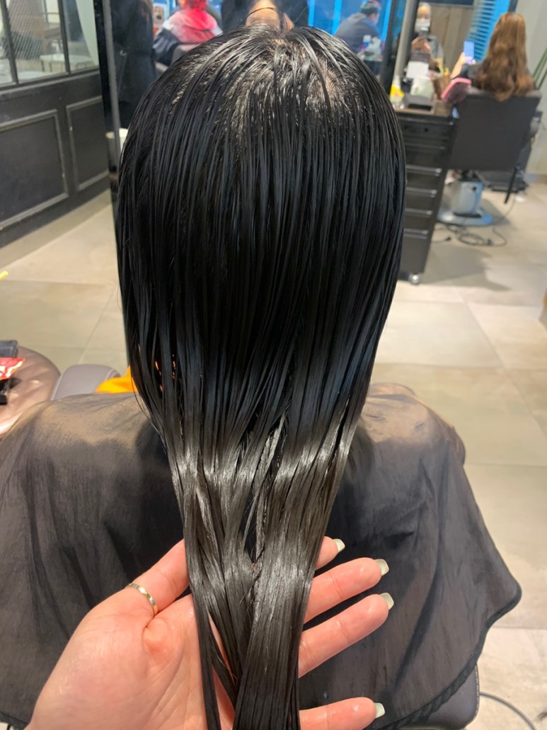 (순서는 클리닉 샴푸 후 클리닉 바른 후 열처리 - 헹구고 - 180도 온도로 매직기작업) 해주셨어요