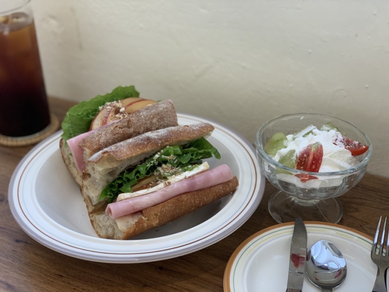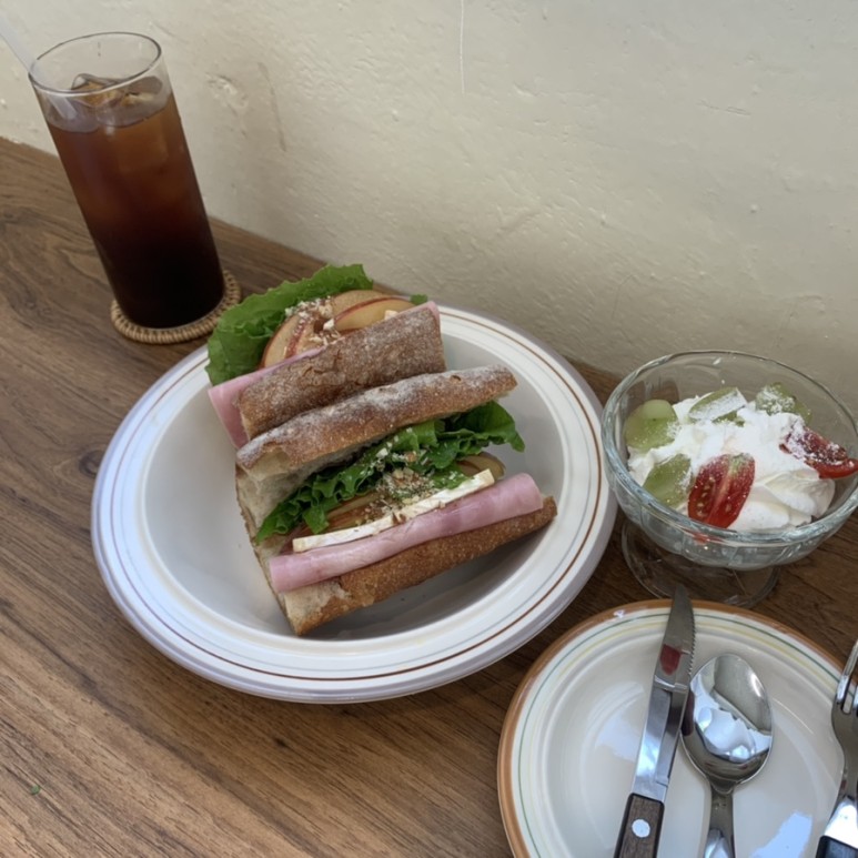 사과가 들어있는 샌드위치를 되게 좋아하는데 역시나 상큼하고 맛있었다. 빵이 바게트라 좀 딱딱해서 먹기 힘든것 빼고는 만족!!( 이건 취향따라 호불호가 많이 갈릴거같다! 난 입천장까지는거 안좋아해서 약간불호)