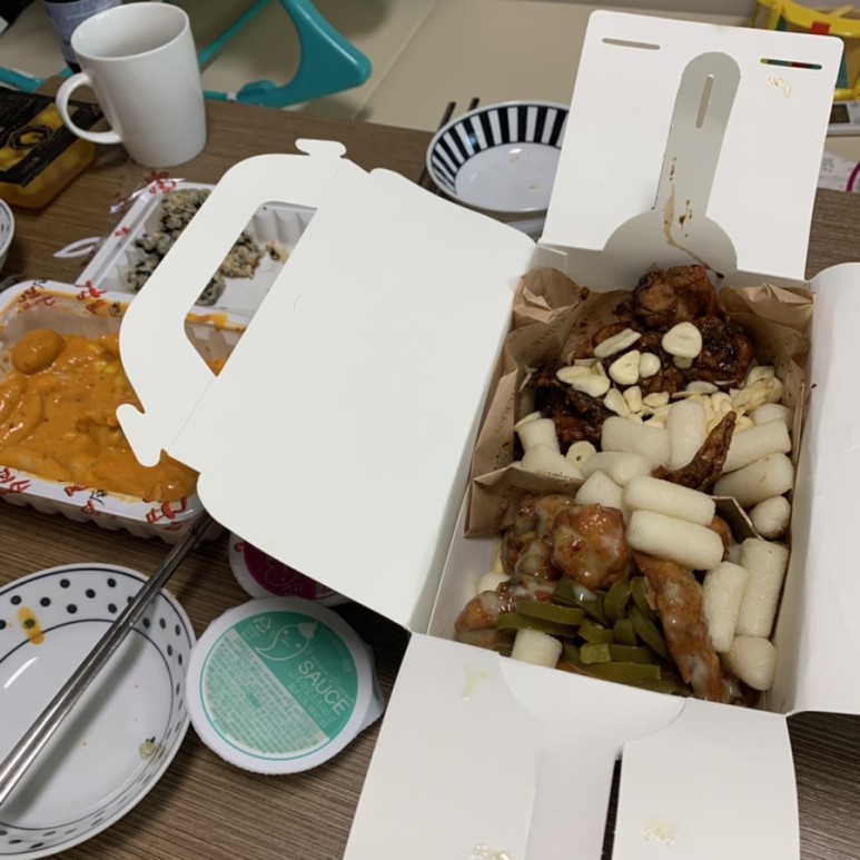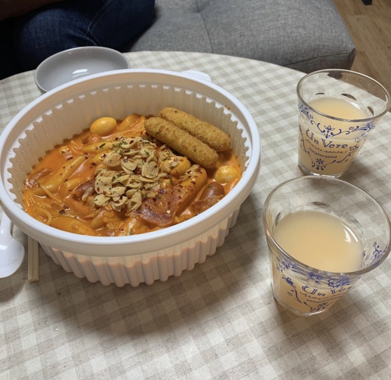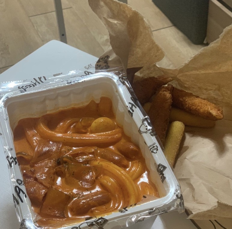 굉장히 푸짐하게 잘 나와서 손님들 오면 시켜먹는 로제 떡볶이다. 생각보다 맵고 토핑이 푸짐해서 좋다. 파스타면이 들어서 조금 더 고급스럽게 먹을 수 있고 로제소스도 너무 맛있음!!!