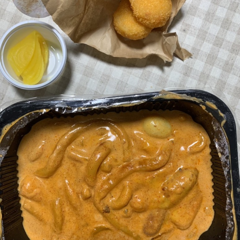 분모자로 떡을 아예 바꿀수 있어 분모자로만 변경해서 먹었는데 분모자를 평소에 굉장히 좋아하지만 분모자만 먹으려니 턱이 아팠다 ㅋㅋㅋㅋㅋㅋㅋㅋ 정말 꾸덕한 로제였고 사실 다른 브랜드랑 큰 차이점은 못느꼇으나 평타는 치는 맛이었음