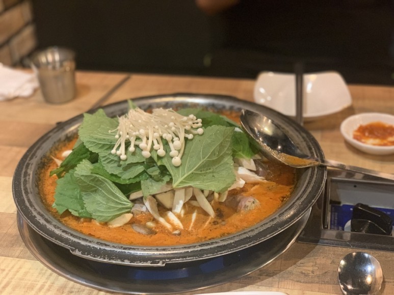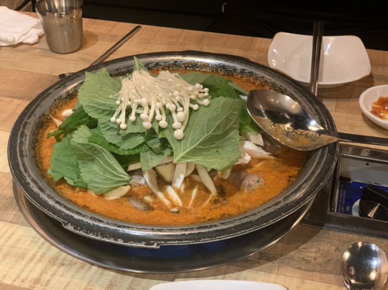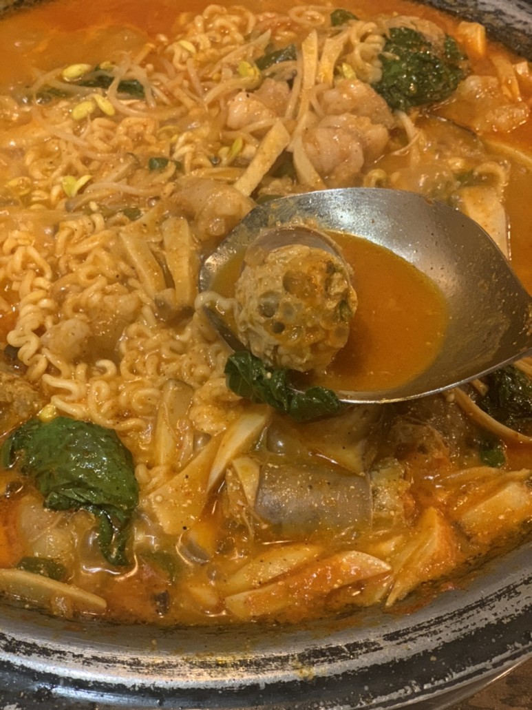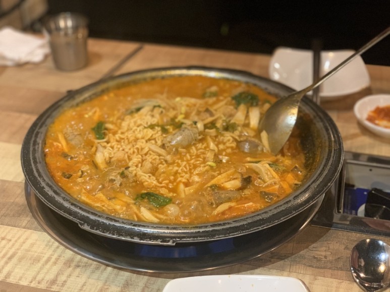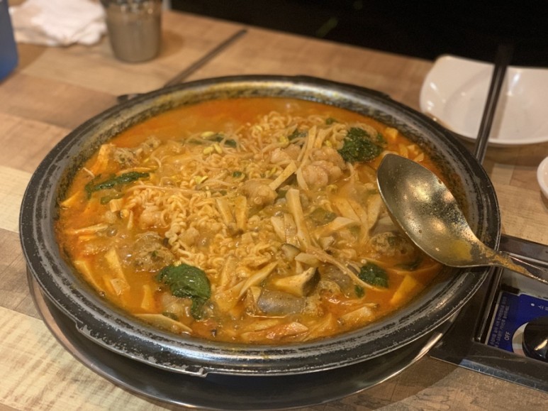 버섯의 양이 푸짐하고 순대랑 곱창도 꽤 많다.