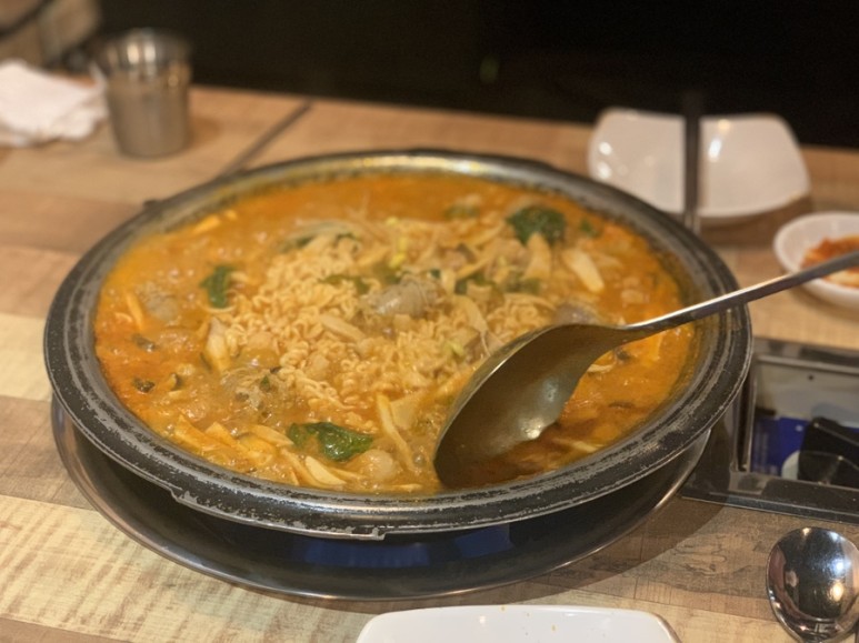 우리는 라면사리를 추가하고 나중에 볶음밥을 먹을랬는데 배불러서 라면사리까지만 먹었다.