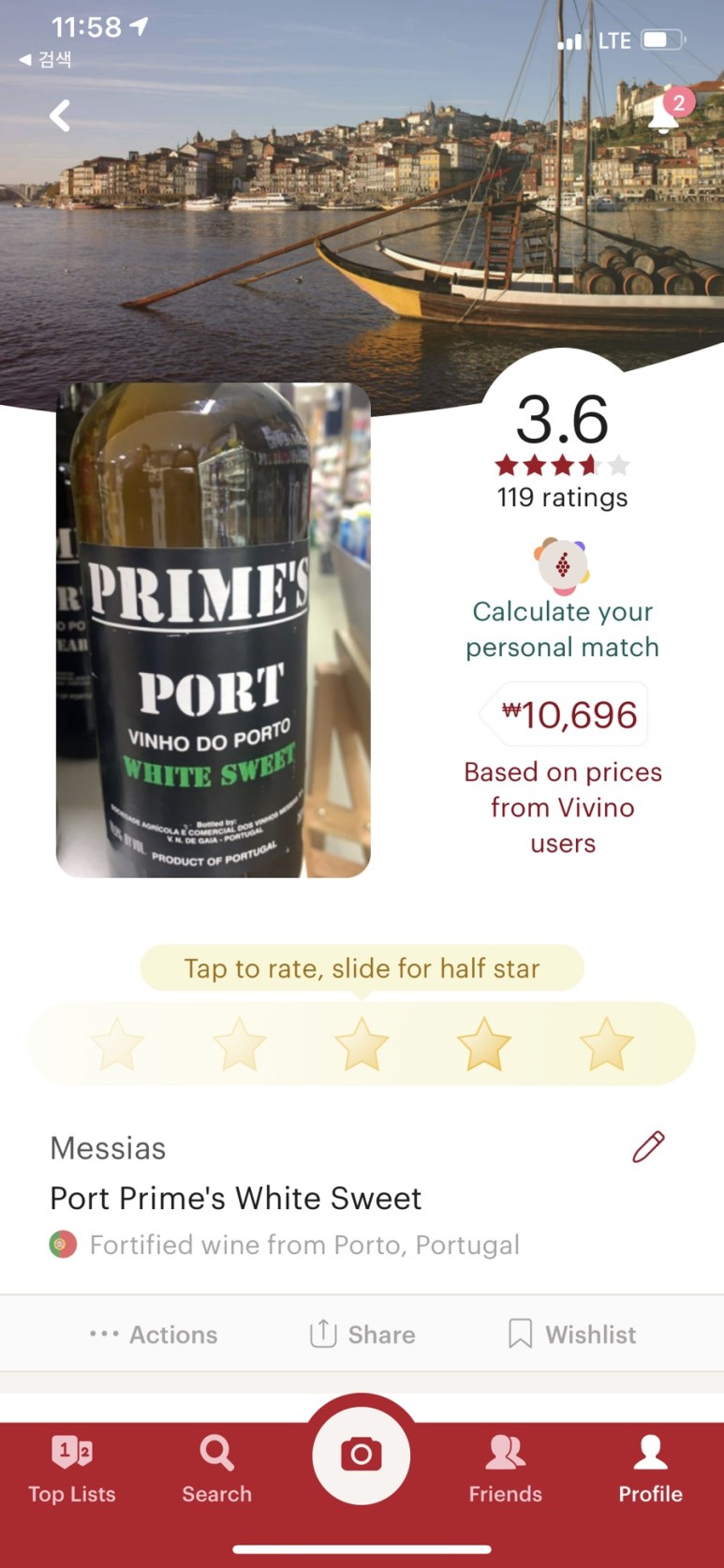 3.6이면 나쁘지 않은 점수고 포트와인을 맛있게 먹었던 기억이 있어서 도전해봤다