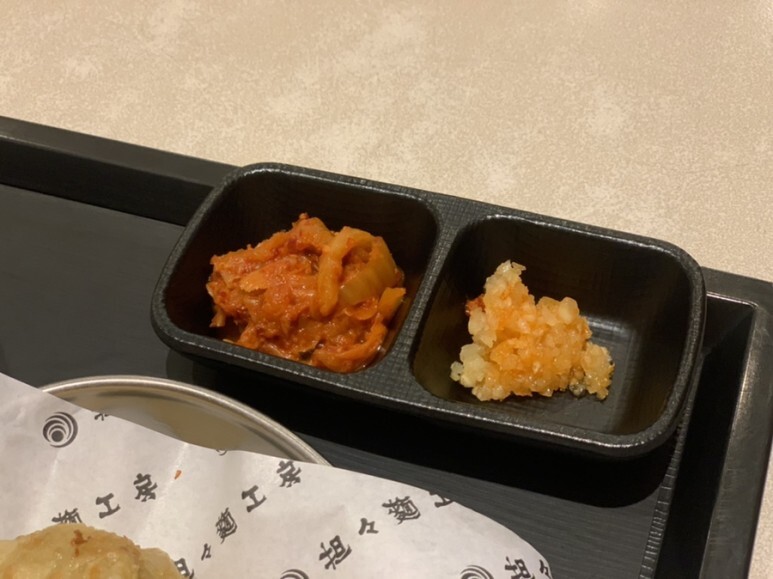 김치는 볶은 신김치가 나오고 옆에 마늘은 무슨 용도인지 설명을 안해주셔서.. 안먹고 있다가 국물에 태워먹어보기도 하고 만두에 올려먹기도 했습니다. 일단 생 마늘맛이 강한걸로 보아 국물에 넣어먹는거 같기도...