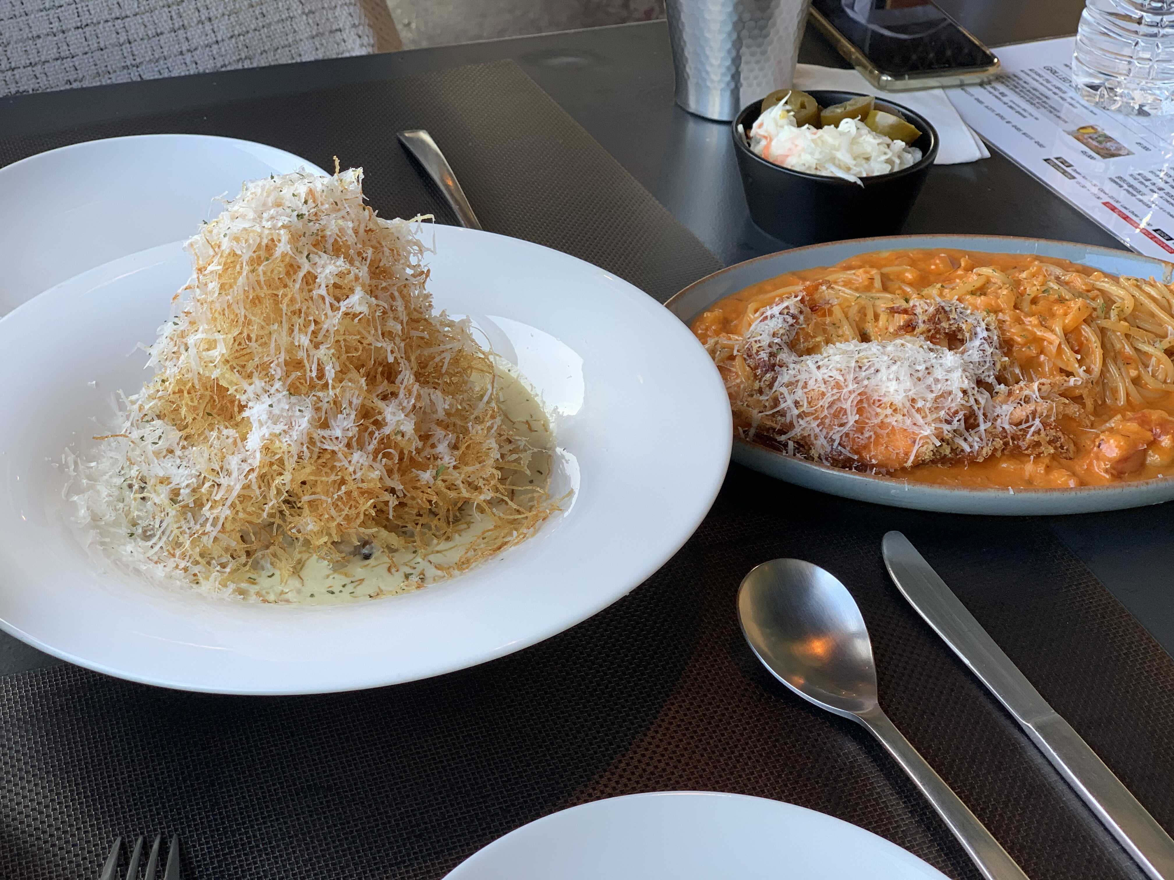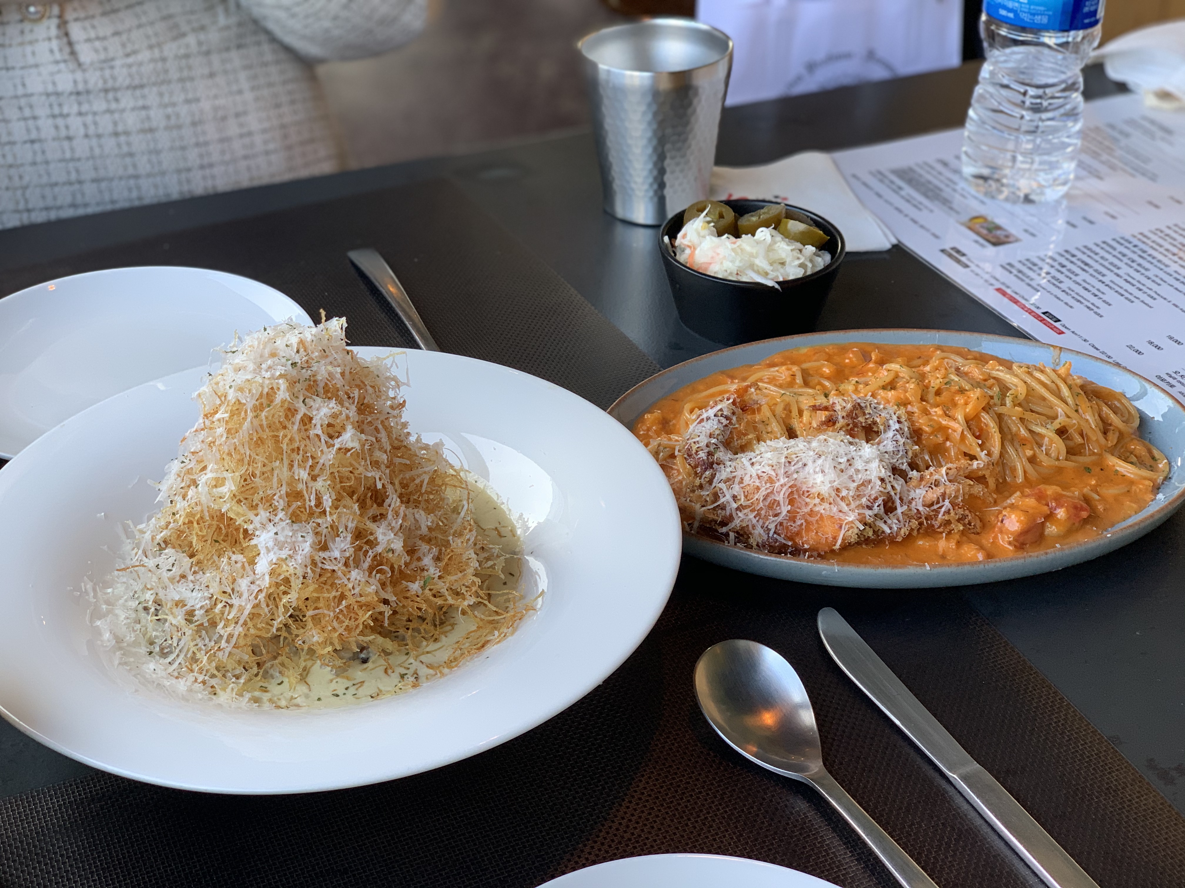 저희는 크랩 스파게티 / 트리플 머시룸 리조또 를 먹었습니다